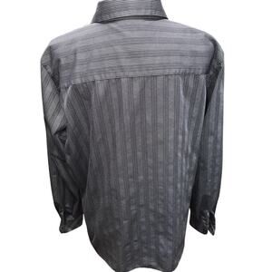 Foxcroft Women’s Wrinkle Free Button Up Top Dark Gray Black Stripe 16 office