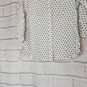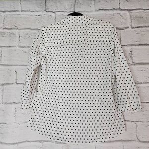 Foxcroft Wrinkle Free Fitted Fit Geometric Button Up Blouse Black White Size 8