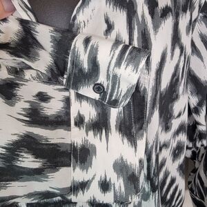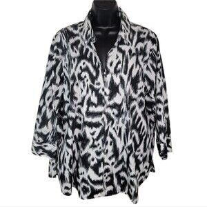 Excellent pre-owned condition. No flaws to note. Women's plus size Foxcroft Wrinkle Free Shaped Fit Full zip Blouse 20w.