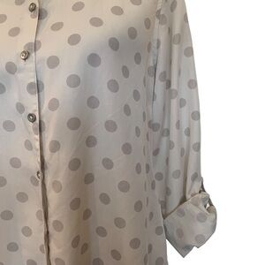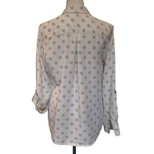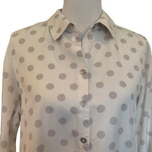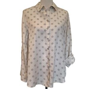 Foxcroft polka dot adjustable sleeve button front blouse. Please see photos for design details measurements and ware.