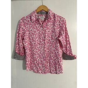 Foxcroft for Appleseeds button down top women’s 6 petite pink printed cotton