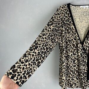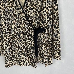 Foxcroft knit top plus size 2X long sleeve full wrap black leopard print cotton
