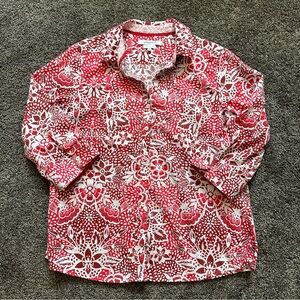 Foxcroft no-iron 3/4 sleeve floral graphic print button up blouse