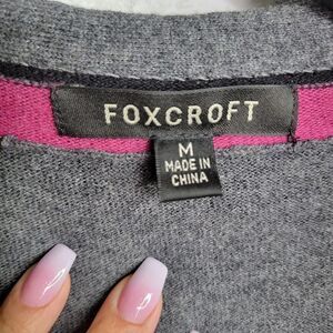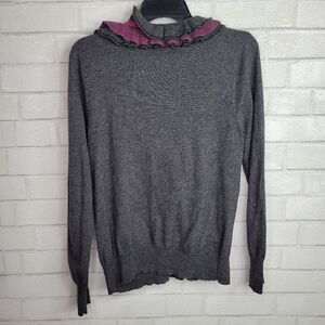 Foxcroft Gray Pink Ruffle Collar Cardigan