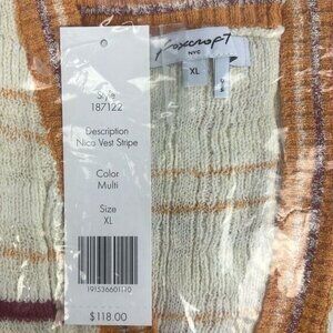 Foxcroft Nico Sweater Vest L Cream/Orange Striped Open Drape Lagenlook NWT