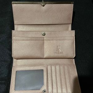 This is such a beautiful wallet! It has tons of pockets and storage! It’s a beautiful pink shade with gold embellishments! 15 pockets all together including card slots.