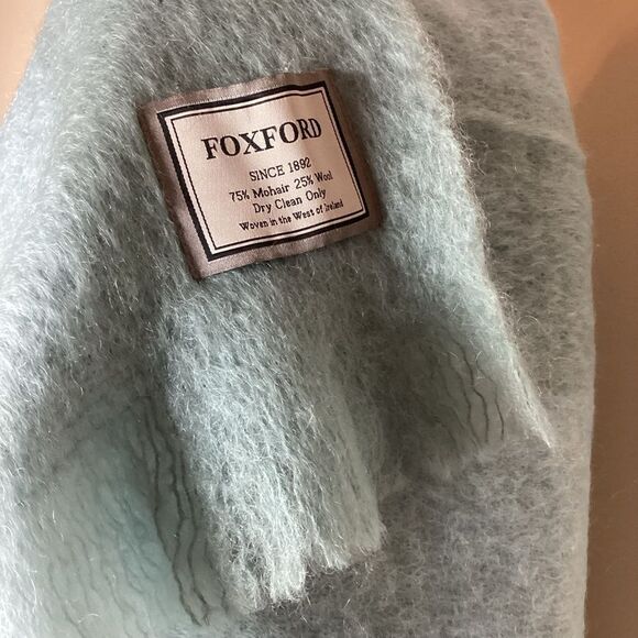 Luxurious light blue mohair wool fancy throw by Foxford. Soft and elegant. Great condition as shown