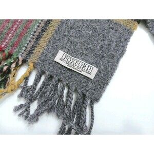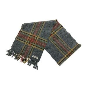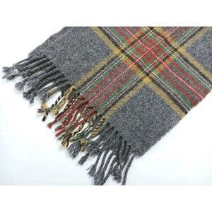 Foxford Scarf Lambswool Checked Tartan Fringed Plaid Ireland Gray Red Green