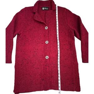 Foxglove Ireland 100% Wool Red Tweed Knit Cardigan Sweater Jacket Women M