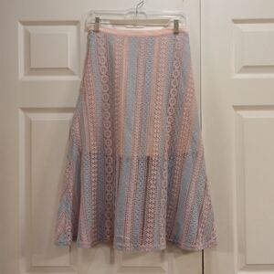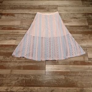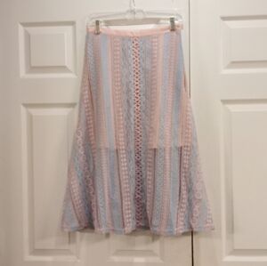 Foxiedox Blue and Pink Crochet Boho Fairycore Regencycore Lace Skirt Size S