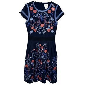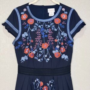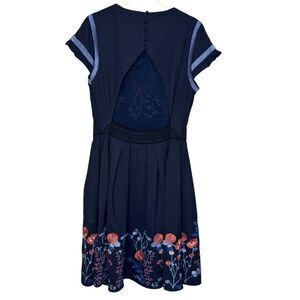Foxiedox Dress Size Medium Senna Embroidered Navy Blue Fit & Flare