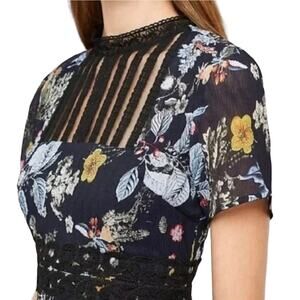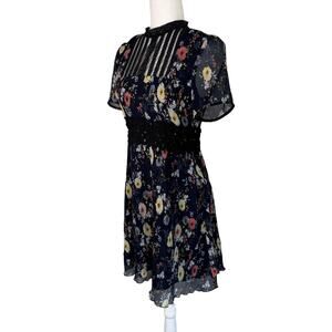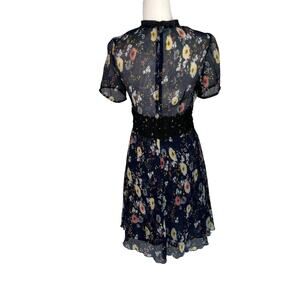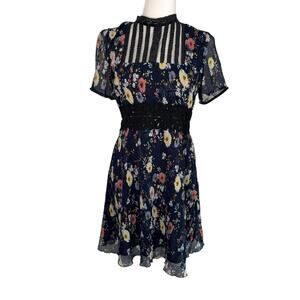 Foxiedox Juniper Floral Print Dress Size Medium Mesh Lace Navy Blue Short Sleeve