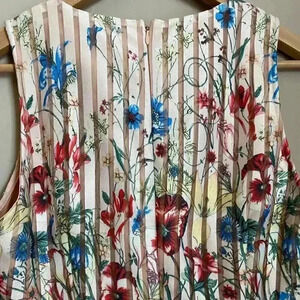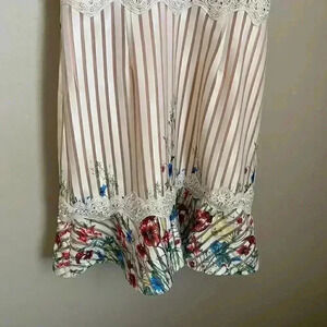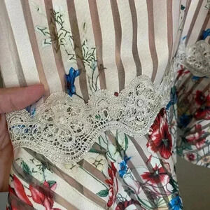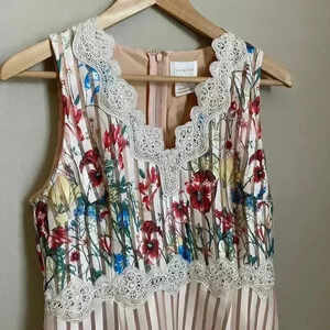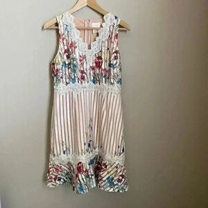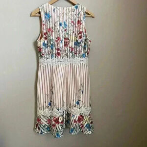 Features: A V-neck with lace trim give this ruffled sheath dress a flirty, fun style, sleeveless, lace trim, allover floral print, ruffled hem