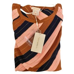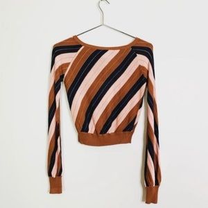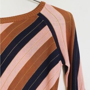 NWT FoxieDox Nina Multi Metallic Striped Crop Sweater Top Sz XL Long Sleeve