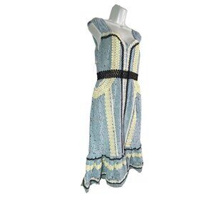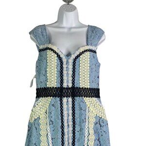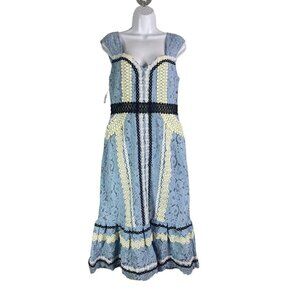 Foxiedox Women's Embroidered Lace Midi Dress A-Line Blue White Size Medium