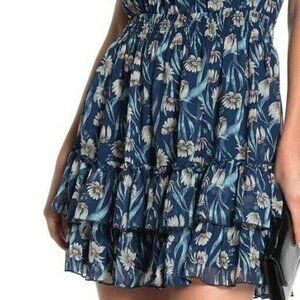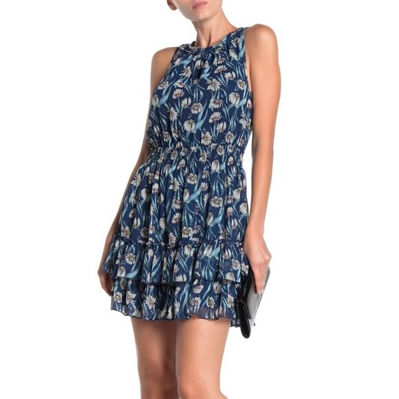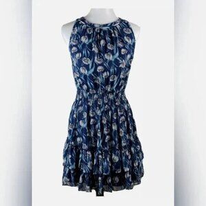Foxiedox Women's Sleeveless Ruffle Blue Floral Print Dress Size S NWT $135.70