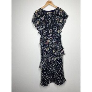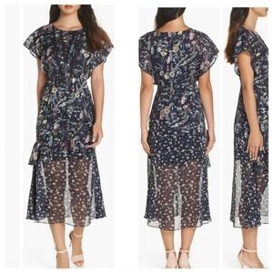 Foxiedoxie Carolina Floral Midi Dress Size 4 Ruffled Lace Panels