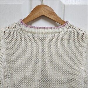 Vintage Foxmoor Sweater Womens Small Cream Pastel Floral Handmade Open Knit Cottagecore Grandma Feminine