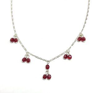 Crafted from solid sterling silver, its delicate 1.4mm twisted paperclip links showcase flirty dangling clusters of glinting 3.5mm deep red crystal beads for a refined yet seductive look.