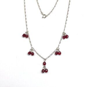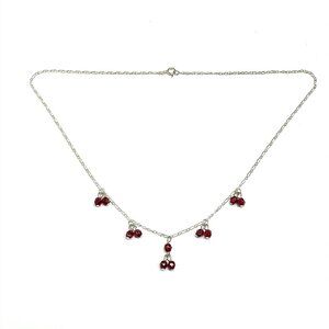 Ladies delicate 16" Sterling Silver Cranberry Red Crystal Station Necklace.