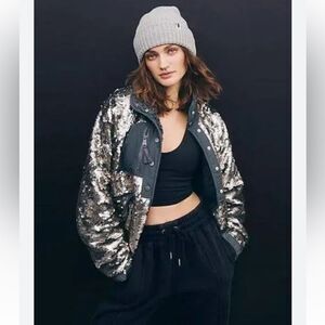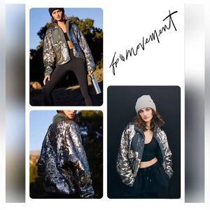Fp Movement Free People Hit The Slopes Jacket silver sequin fleece bomber XL