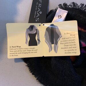This versatile square blanket wrap by Fraas combines elegance with function, featuring a vibrant floral design on a black base. Its triangle neck wrap style is perfect for layering during cooler months. Crafted from quality materials, it is lightweight yet warm, offering style and comfort.