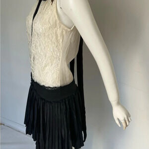 Fracomina Women's Dress Mini Peter Pan Collar Neck Beige And Black Lace Sz M NWT
