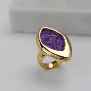Indulge in luxury with our Fragments Ring. Crafted from 18k gold, each ring features a unique lozenge shape and natural stone fragments at its center. No two rings are alike, making this a truly exclusive piece for the sophisticated and discerning individual. Elevate your style with our Fragments Ring.