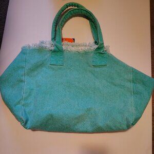 Fragonard Soleil Perfume Canvas Aqua Green Reuseable Tote Hand Bag Frayed