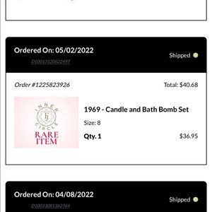 Comes with what is shown in photo, the candle and bath bomb which both have rings inside.