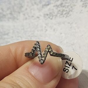 New Fragrant Jewels Ring from the Surprise Halloween candle. Size 7. Gray/black rhodium zigzag with cz stones. Its certificate listed its value at $25.
