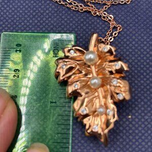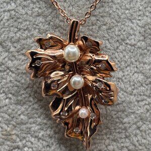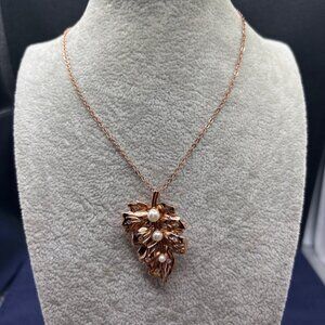Fragrant Jewels Rose Gold Plated Pendant Brooch Necklace Faux Pearls & Crystals
