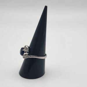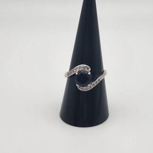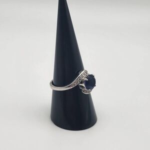 Fragrant Jewels September Birthstone Collection blue faux sapphire cubic zirconia bypass ring with small clear cubic zirconia.