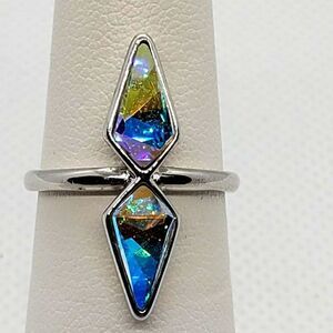 Fragrant Jewels silver colored ring with two Irridescent stones.