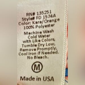 Fraiche by J Kara Orange Boho Print Dress Size M Made in USA