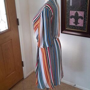 Fraiche by J, Multicolor stripes, wrap top, Short Sleeve dress