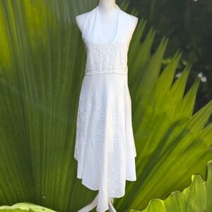 Beautiful Floral Embroidered Cotton Summer Halter Dress