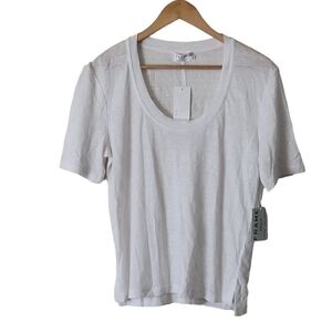 The slouchy linen u neck tee in blanc is the closest essential that you've always known you needed.
