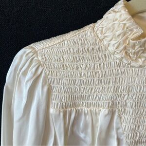 Frame 100% Silk blouse Small Ivory High neck Long sleeves Smocked Womens top