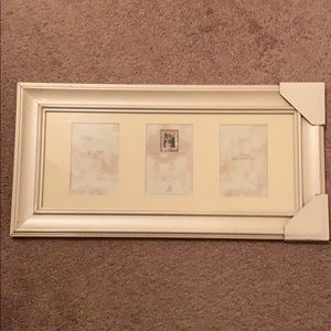 3 picture frame . Shiny creme color. Very pretty frame great for your memories! New Colombia frame made in Canada.