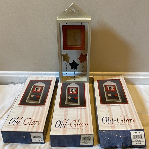 Three set of new 2.5 x 3 hanging with decorative stars. Red, white and blue.