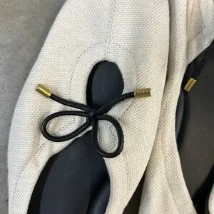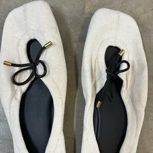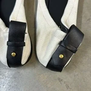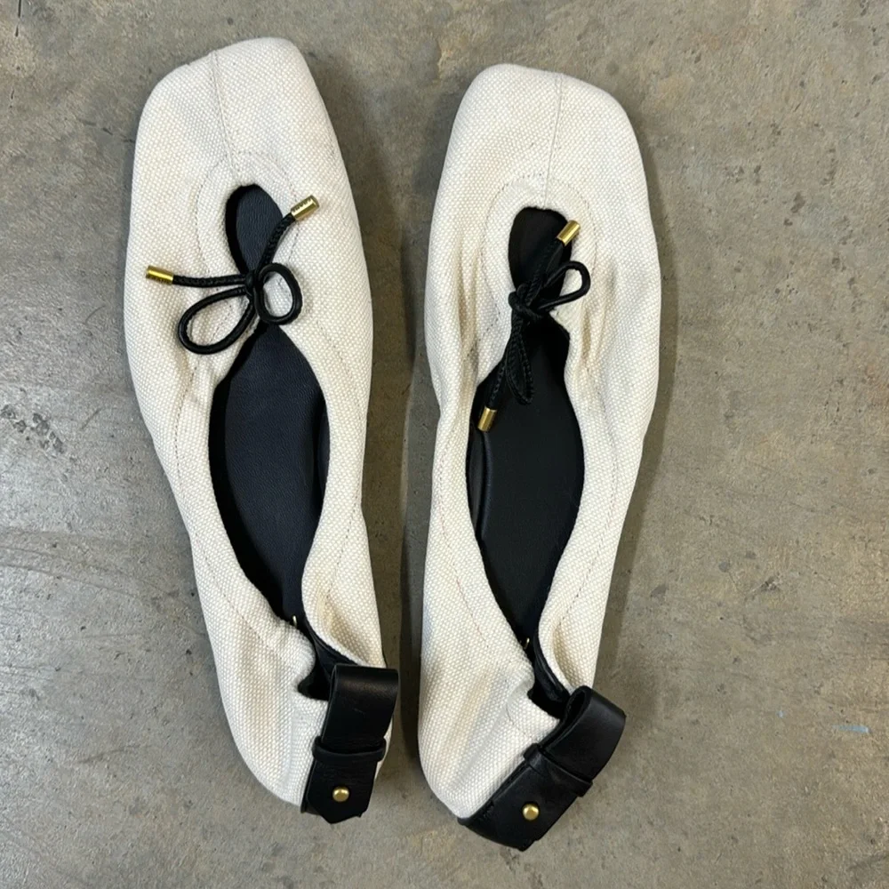 Frame’s Le Sunset is the perfect modern ballet flat. Crafted of canvas and rich leather, this square-toe silhouette features a peek-a-boo cut out adorned with a bow tie.