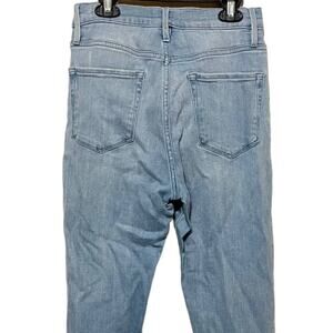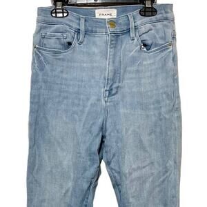 Frame Ali High Rise Cigarette Light Wash Jeans, good condition, very slight puckering near crotch, size tag says 29, measurements are approx. 28 waist, 26 inseam