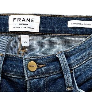 Frame Ali High Rise Skinny in Juniper Medium Wash Mid Rise Jeans Denim Size 25