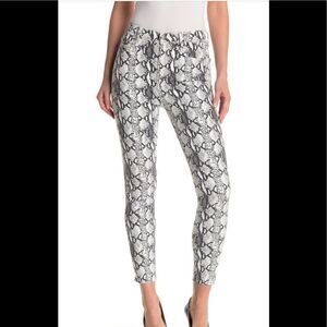 Size 26, A high waisted python printed skinny jean is perfect for trendy styling. Sizing: 24=00, 25=0, 26=2, 27=4, 28=6, 29=8, 30=10, 31=10-12, 32=12 - Zip fly with button closure - High waisted - Snake print - Skinny leg - Denim construction - Ankle crop - Approx. 11" rise, 26" inseam (size 26) - Made in USA This item cannot be shipped to Canada.