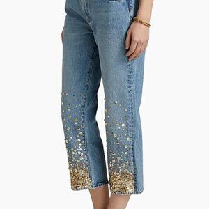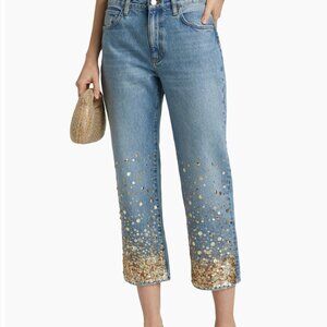 Frame Atelier of Denim Gold Sequin Embellished Champagne Jeans 28 NWT $698