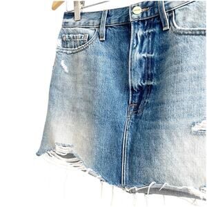Frame Bales Road Denim Mini Skirt Y2K Distressed Hem Size 27 Grunge Bohemian