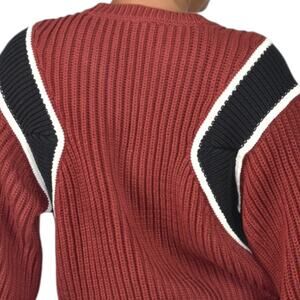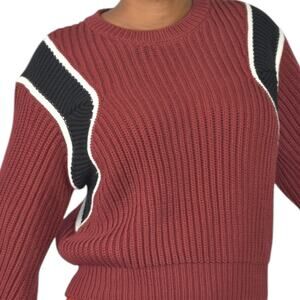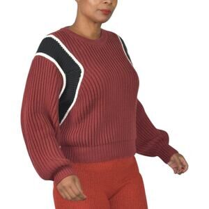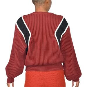 Frame Balloon Sleeve Sweater Red Chunky Fisherman Rib Knit Crop Colorblock Small