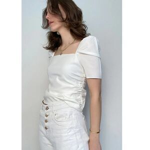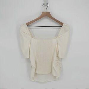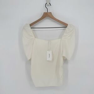 Frame Betty Square Neck Top Puff Shoulder Ruched Silk Off White Women's M NEW