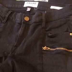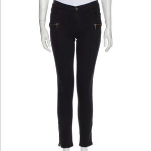 Frame Black Mid Rise Skinny Leg Gold Zip Jeans Size 27 NWOT